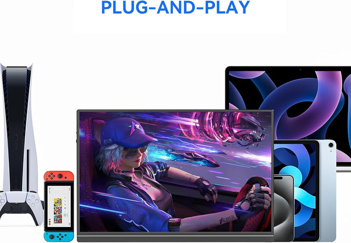 - 【Portable Monitor für unterwegs】Dieser tragbare Monitor ist nur 0,36 Zoll dick und wiegt 1,58 Pfund. Es passt perfect in Ihren Rucksack, ohne zusätzlichen Platz zu beanspruchen. Mit einer Helligkeit von 300 cd/m² und einem leichten Design bleibt es auch bei hellem Sonnenlicht im Freien gut sichtbar. Richten Sie im Handumdrehen einen Arbeitsbereich mit zwei Bildschirmen ein oder erweitern Sie Ihr mobiles Display für ein beeindruckendes Seh- und Spielerlebnis unterwegs.